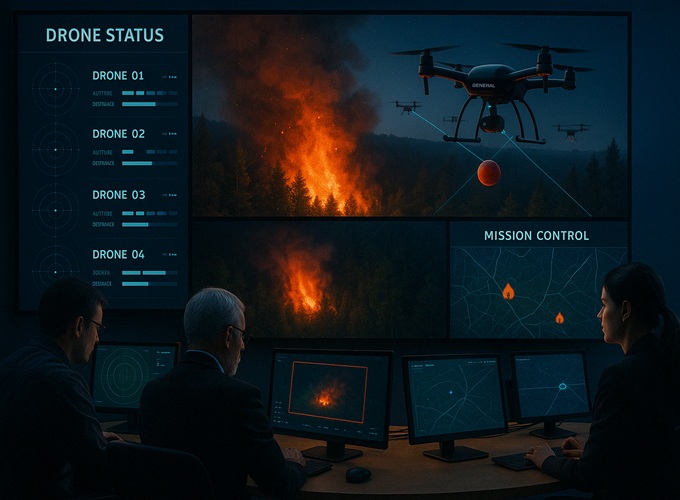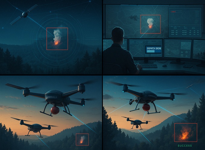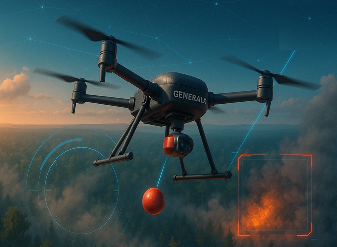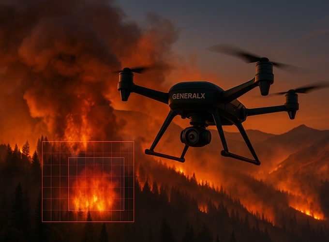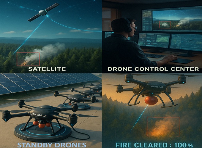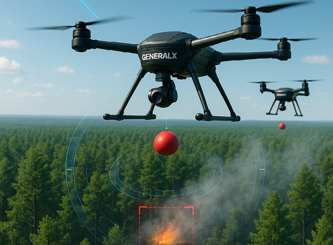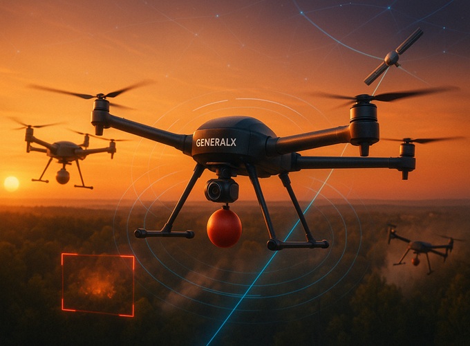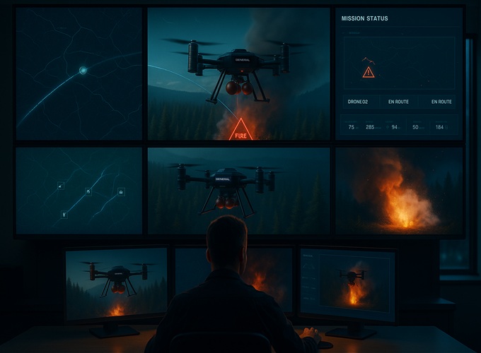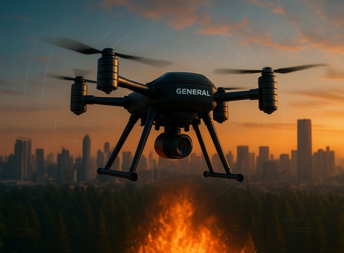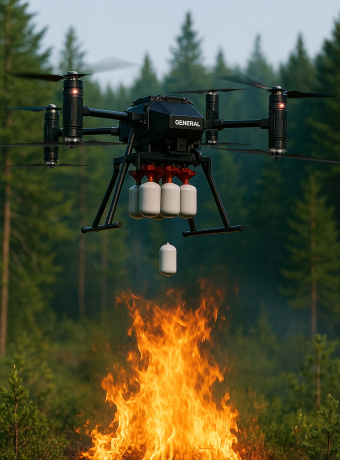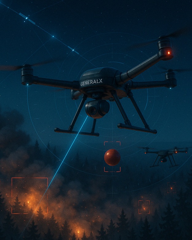 General X 智能消防无人机系统融合 AI 火源识别、精准导航与稳定通信,第一时间发现火情、迅速响应、定点灭火,全面实现自主化作业。我们正在重新定义野火控制的方式 —— 更智能、更高效、更安全。
